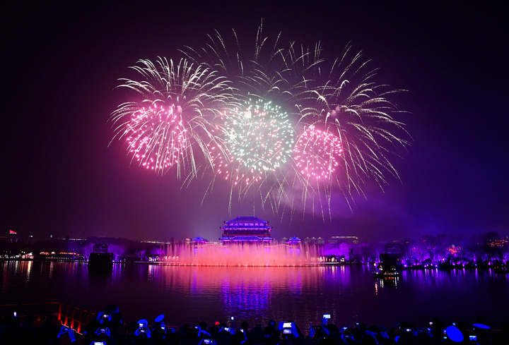 2月5日,西安大唐芙蓉園內(nèi)進(jìn)行的煙花晚會現(xiàn)場。新華社記者 劉瀟攝