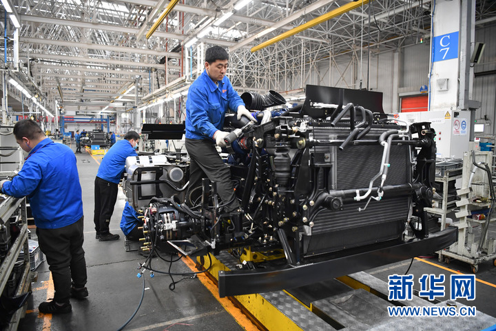 新華網(wǎng)西安2月23日電(史夢 張思思)工業(yè)機器人揮舞長臂,工人在生產(chǎn)線上緊張忙碌。在位于西安經(jīng)開區(qū)涇渭新城的陜汽控股集團,總裝車間正馬力全開,每6分鐘就有一輛整車從這里下線。