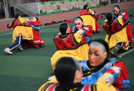 3月20日,隆化縣職教中心學(xué)生在練習(xí)國家級非遺項(xiàng)目“二貴摔跤”。