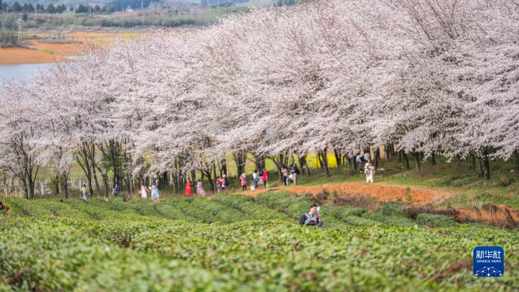 近日,貴州省貴安新區(qū)櫻花園內(nèi)的2.4萬(wàn)畝櫻花競(jìng)相綻放,如雪似霞,吸引游客前來(lái)賞花觀光?!?/p>