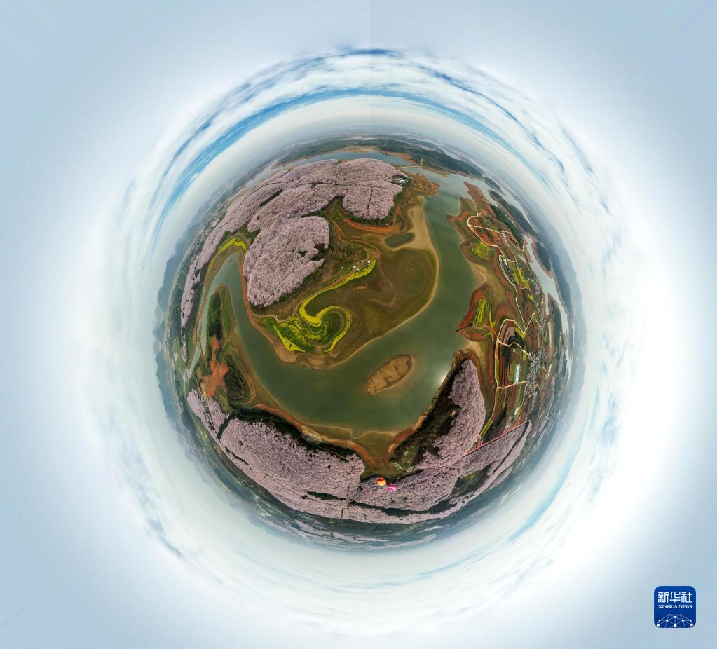 這是3月21日拍攝的貴州省貴安新區(qū)櫻花園(無(wú)人機(jī)全景照片)。新華社記者 楊文斌 攝