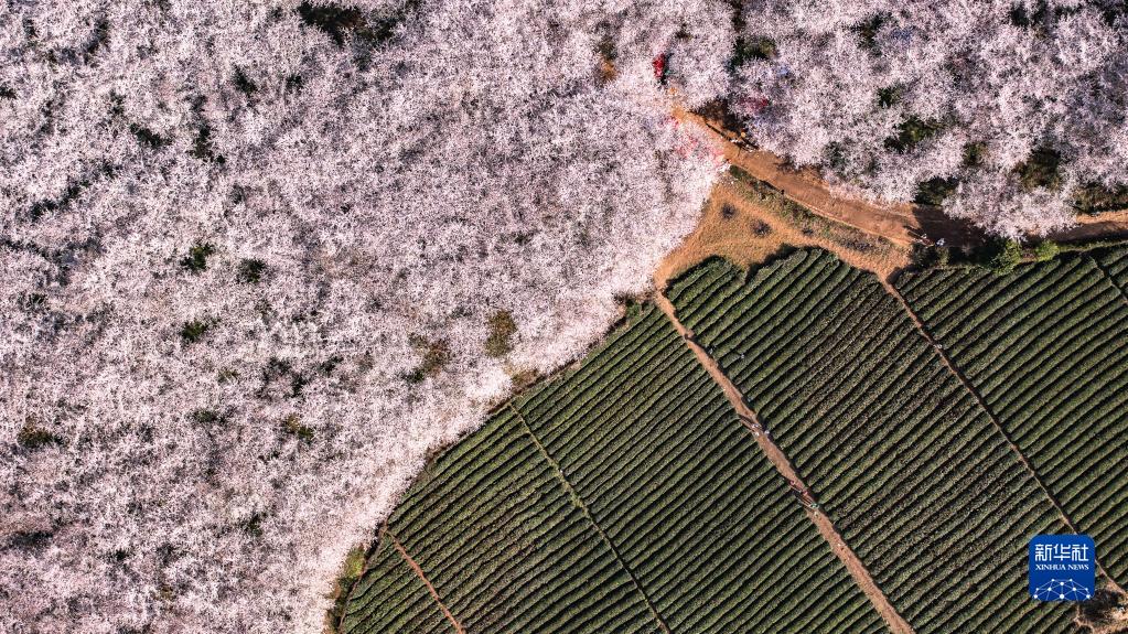3月21日拍攝的貴州省貴安新區(qū)櫻花園(無(wú)人機(jī)照片)。新華社記者 陶亮 攝