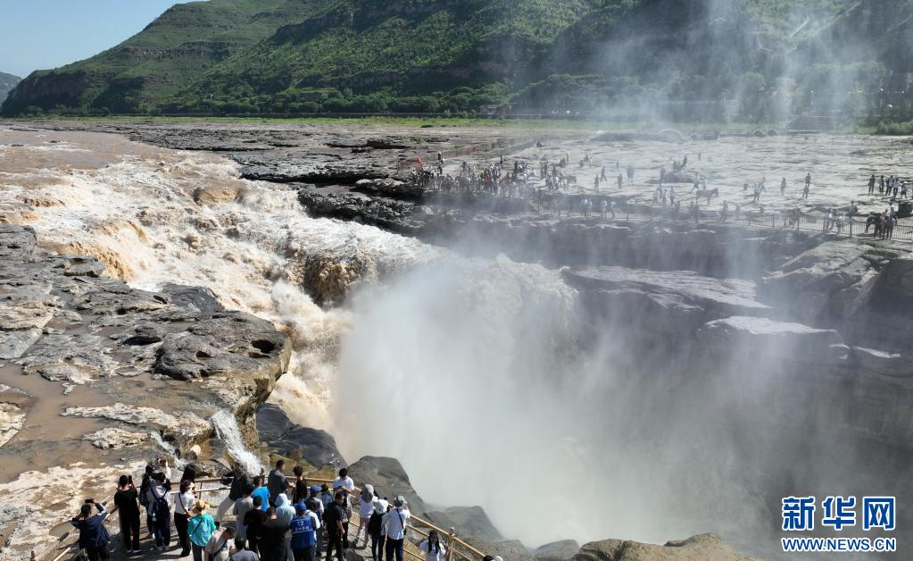 暑期,眾多游客來到位于陜西宜川縣和山西吉縣交界處的黃河壺口瀑布游覽,領(lǐng)略壺口瀑布美景。