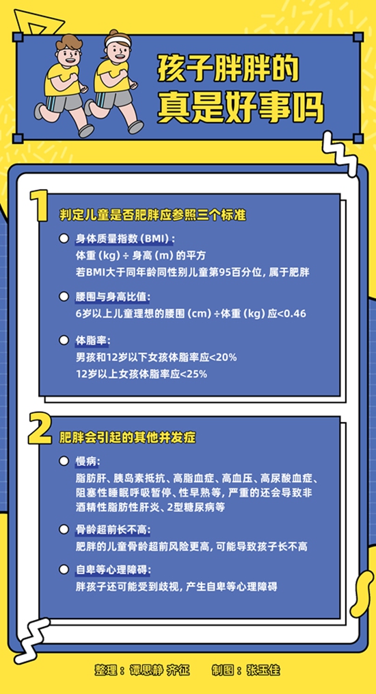 兒童肥胖比“中年發(fā)福”危害更大。兒童期肥胖是引起成人肥胖及各種并發(fā)癥的危險因素之一,并且孩子成年后患慢性疾病的風險概率增加,特別是心血管疾病和代謝性疾病。