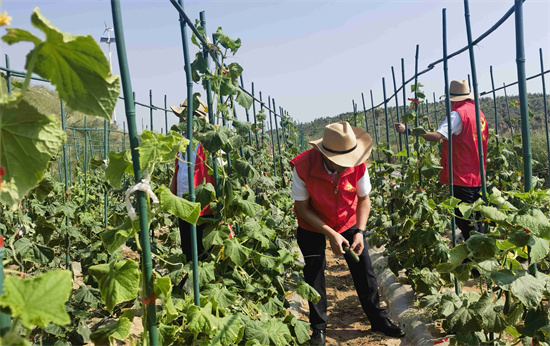 在北翼采煤沉陷區(qū)立體式生態(tài)重建示范基地,放眼望去,黃瓜、豆角、西葫蘆、油菜、西瓜、甜瓜等二十幾種應(yīng)季果蔬長勢喜人,沉甸甸的果實掛滿藤蔓。一塊塊規(guī)規(guī)整整、成框連片的梯田層次分明。工作人員奔忙在田埂水渠,構(gòu)筑成了一幅極具煙火氣息的絕美畫面。站在瞭望臺俯瞰,滿眼一片生機盎然,仿佛為陜北地區(qū)黃土溝壑建立起了一道綠色屏障。遙望這一切,誰能想到如今的良田美景,曾經(jīng)卻是個雜草叢生的荒山。