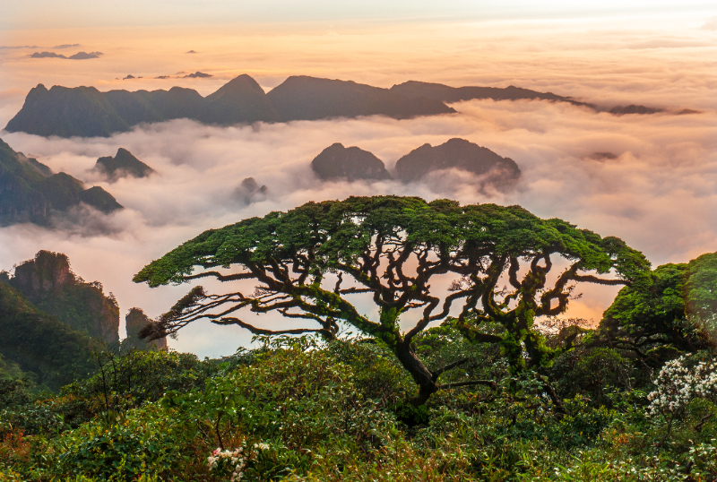廣西大瑤山國家級自然保護區(qū)圣堂山頂“八桂迎客松”鐵杉,600年。李德康攝