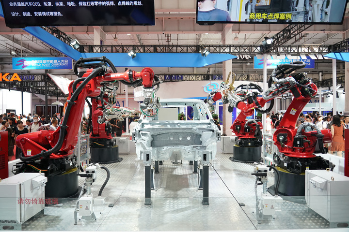 強勁靈活的手腕,高扭矩的設(shè)計,4個紅色的機械臂上下?lián)]舞,為汽車車身進(jìn)行點焊作業(yè)……在2023世界機器人大會上,沈陽新松公司針對汽車工業(yè)研發(fā)的白車身點焊機器人工作站引人注目。