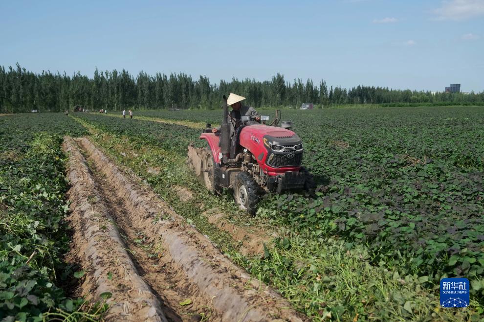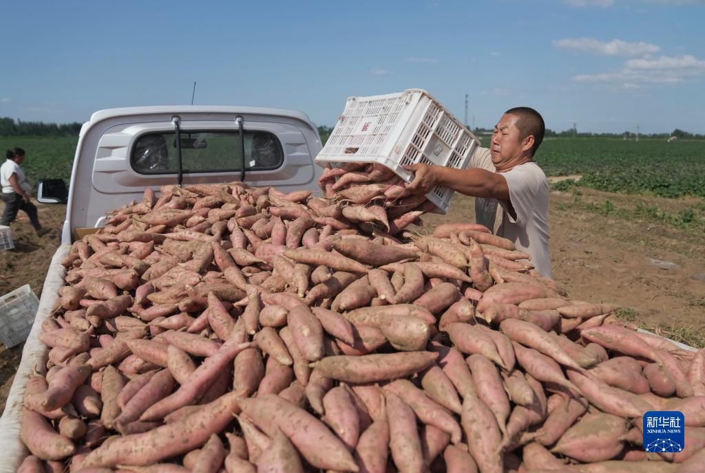 8月28日,灤州市九百戶鎮(zhèn)一家鮮食紅薯種植合作社的社員在田間收獲煙薯。