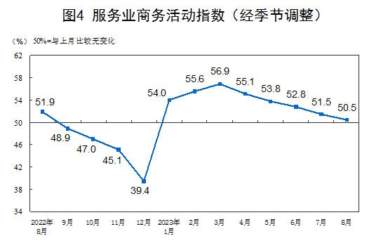 8月份,非制造業(yè)商務活動指數(shù)為51.0%,比上月下降0.5個百分點,仍高于臨界點,非制造業(yè)持續(xù)擴張。