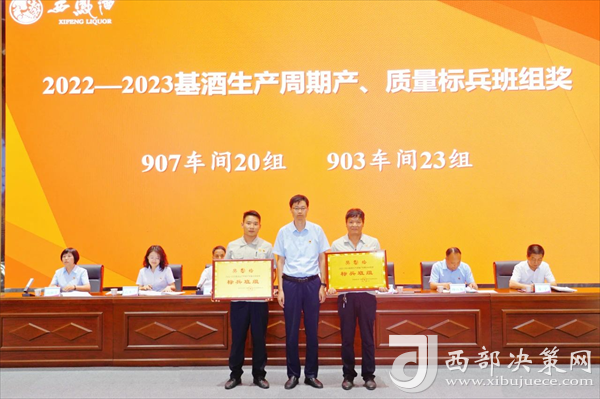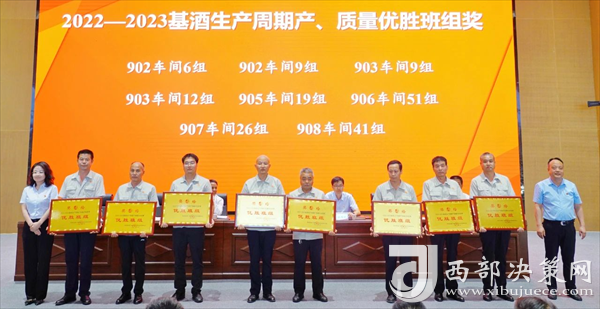 會上,張周虎宣讀了《關于對2022—2023基酒生產(chǎn)周期產(chǎn)質(zhì)量勞動競賽獲獎車間、班組進行表彰獎勵的決定》。與會領導為受表彰的獲獎車間、班組頒發(fā)獎牌。
