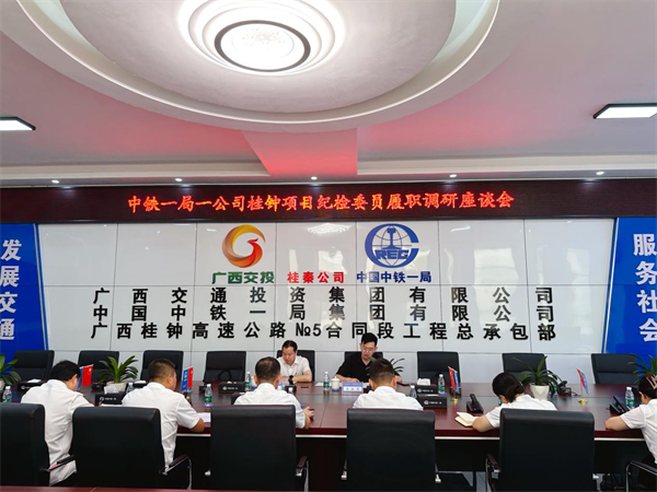 9月25日上午,中鐵一局州分公司紀委在廣西桂鐘5標項目部會議室召開桂鐘項目紀檢委員履職調研座談會。公司黨委副書記、紀委書記朱懷勇,公司紀委李振菲,桂鐘項目黨支部書記、副書記、紀檢員及黨員代表共計13人參加座談會。