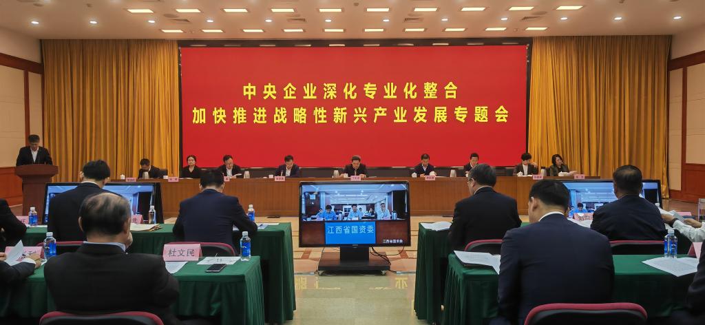 國務(wù)院國資委19日召開“中央企業(yè)深化專業(yè)化整合加快推進(jìn)戰(zhàn)略性新興產(chǎn)業(yè)發(fā)展專題會”。新華社記者 姚均芳 攝