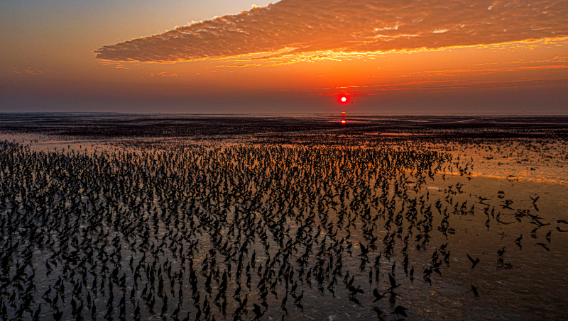 山東黃河三角洲自然保護區(qū)內的候鳥集群 張曉龍攝(國家林草局供圖)