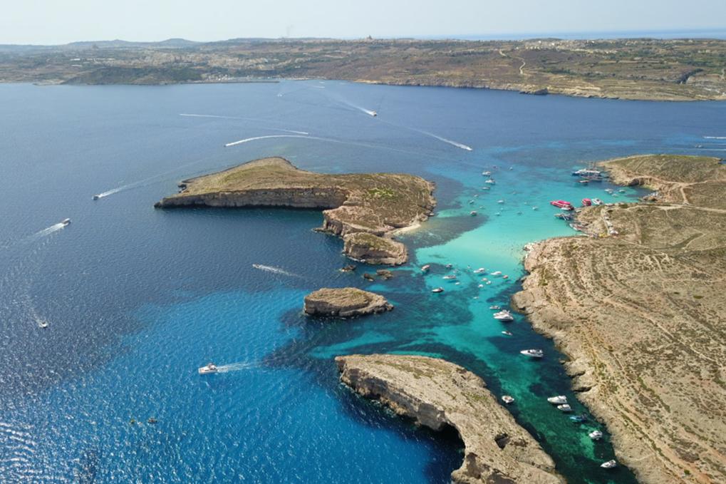 這是2023年7月7日在馬耳他科米諾島拍攝的海島風光(無人機照片)。新華社記者陳文仙攝