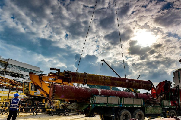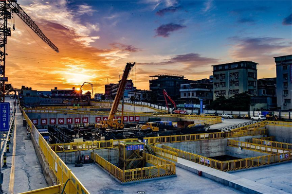 據(jù)項(xiàng)目部常務(wù)副經(jīng)理吳躍華介紹,白坭坑站目前投入電動抓斗3臺、長臂挖掘機(jī)1臺,短臂挖機(jī)6臺、25噸汽車起重機(jī)3臺,100噸汽車起重機(jī)1臺、塔吊2臺、土方運(yùn)輸車40臺,各工種作業(yè)人員400人。日平均出土量約2000立方米、綁扎制作鋼筋45噸。
