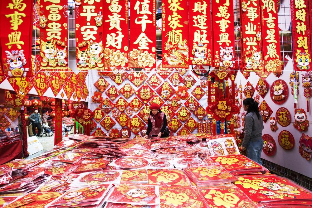 2024年1月13日,市民在廣西南寧市上海路年貨市場選購新春飾品。新華社發(fā)(趙京武 攝)