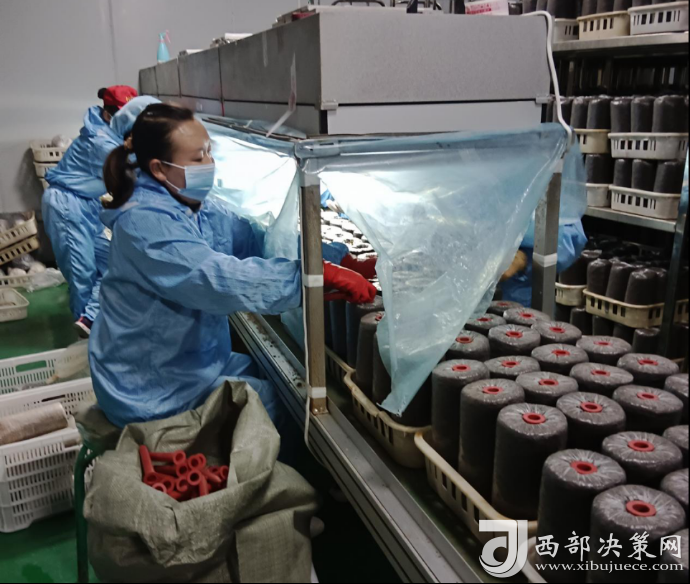 伴隨著機(jī)械的聲響,菌棒生產(chǎn)車間里的工人們忙中有序,一堆堆木屑通過(guò)攪拌、裝袋、滅菌、接種等工序,變成了一個(gè)個(gè)菌棒,源源不斷地走下生產(chǎn)線,走進(jìn)養(yǎng)菌室,孕育著致富的希望。