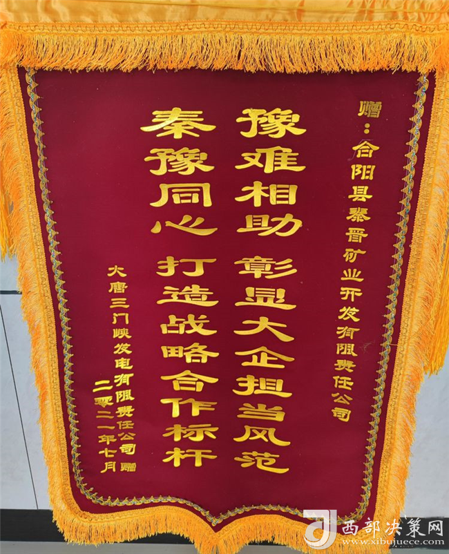 近日,大唐三門(mén)峽發(fā)電有限公司為秦晉集團(tuán)公司送來(lái)了感謝函,并將一面寫(xiě)有“豫難相助,彰顯大企擔(dān)當(dāng)風(fēng)范,秦豫同心,打造戰(zhàn)略合作標(biāo)桿”的錦旗送到了秦晉集團(tuán)公司,對(duì)秦晉集團(tuán)“一方有難八方支援”的大愛(ài)精神表示感謝?。▓D/文:聶曉英)